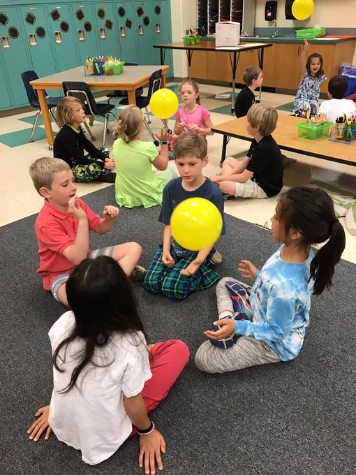 Students have been working very hard on "count-bys." We chant 2, 4, 6, 8, 10, 12, 14, 16... or 6, 16, 26, 36, 46, 56, 66... or 129, 119, 109, 99, 89, 79... or even 125, 120, 115, 110, 105, 100, 95, 90, 85, 80. We practiced count-bys with balloons...