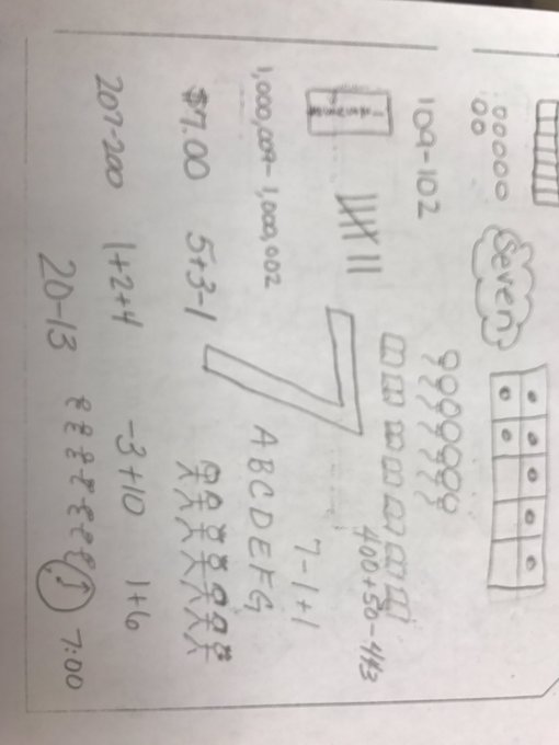 Number identification, counting, coins, hundreds charts, and adding strategies have been the foci in math. Although students have an idea behind numbers, we take it a step further to ask them to think about different ways to show a number. Here are some ways we showed the number 7.